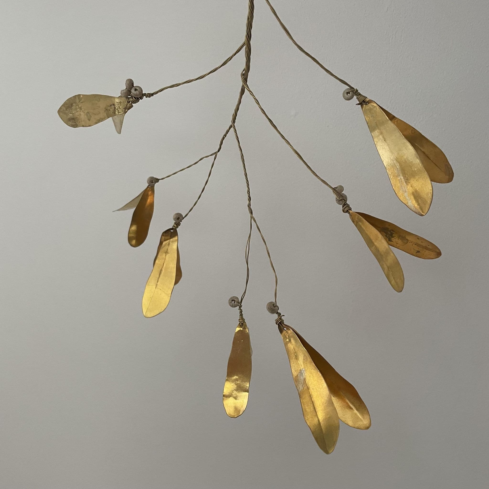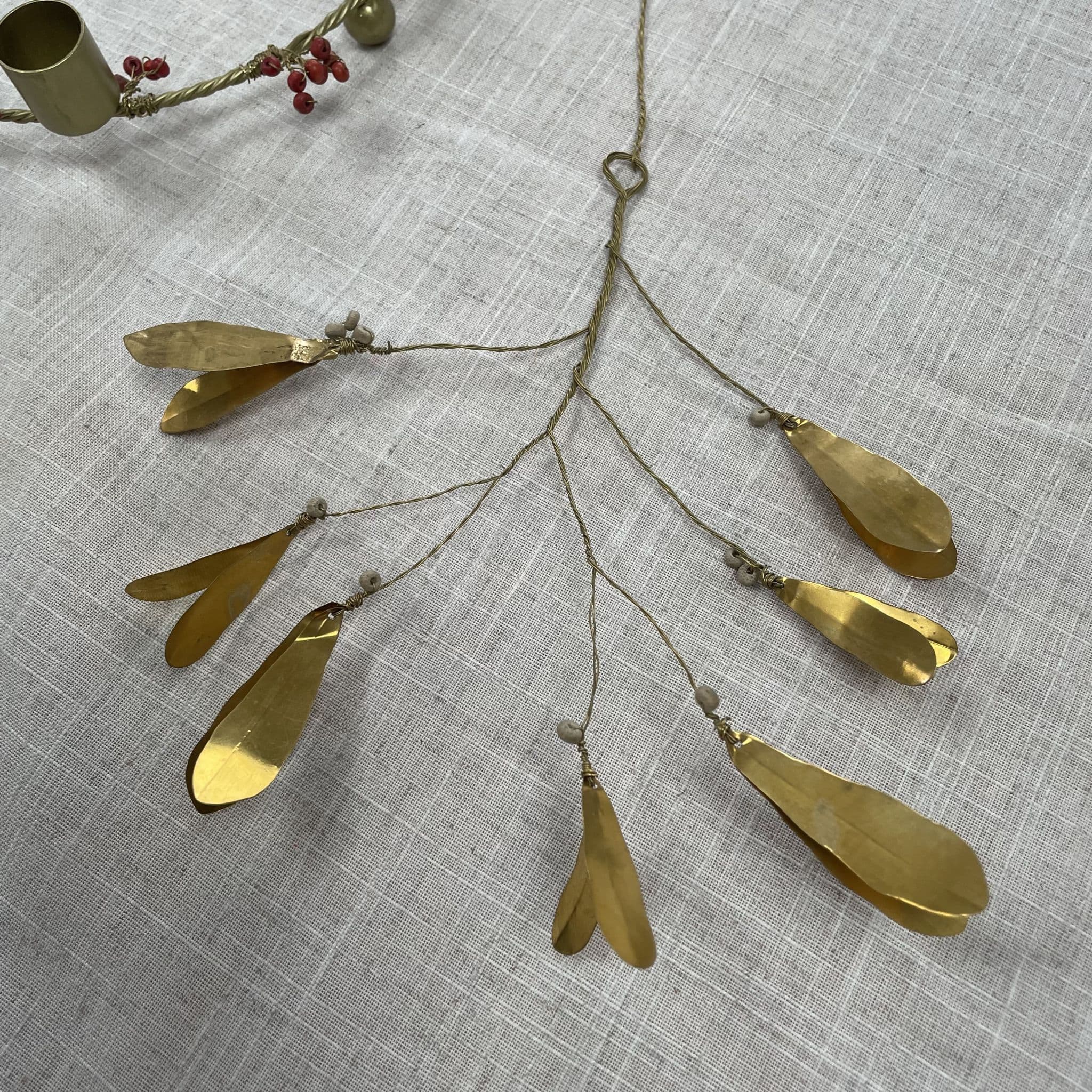 Brass Mistletoe and Wooden Berry Hanging Decoration, Small