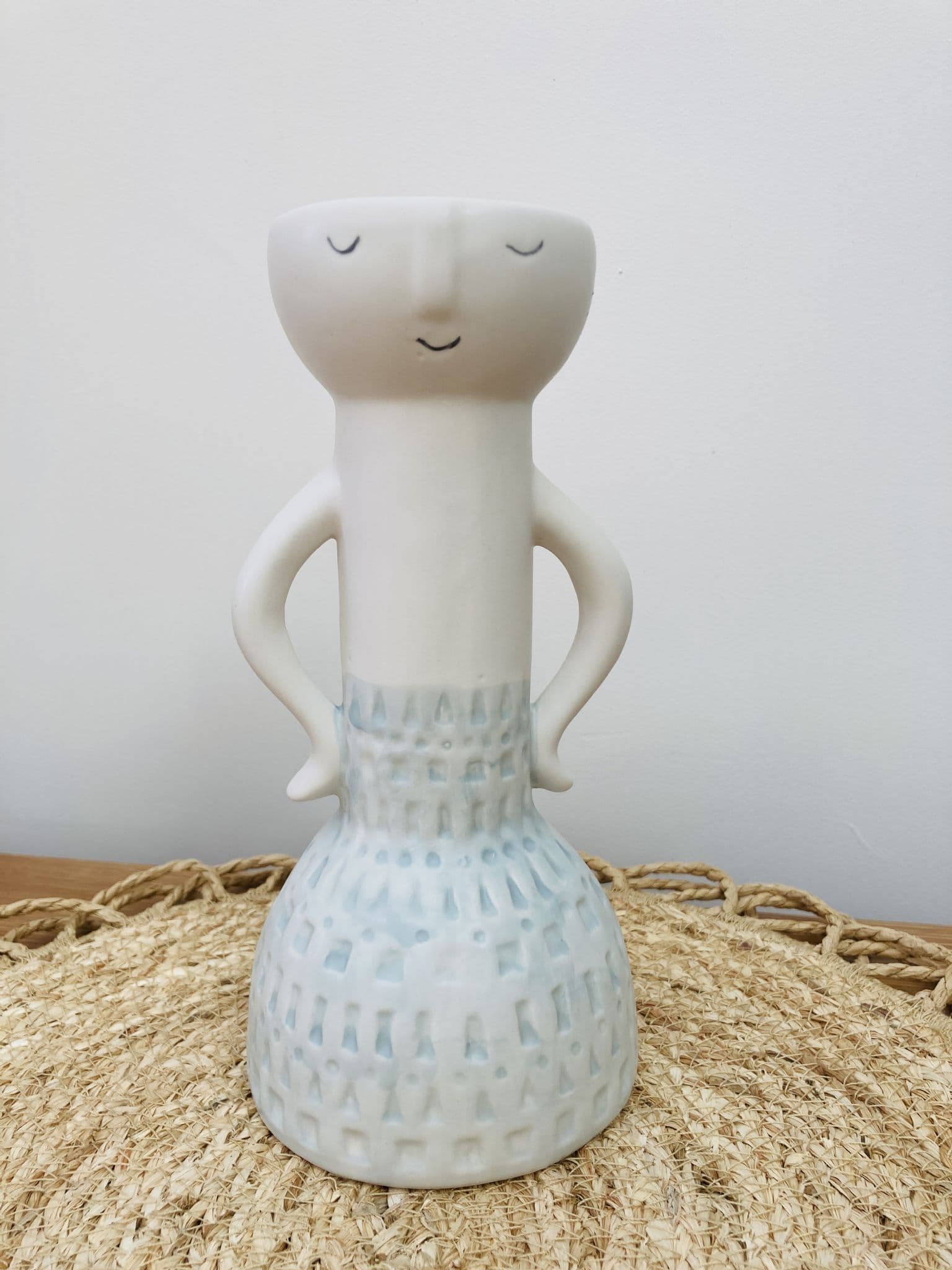 Home / At Home / Vases & Planters/Plant Pots Product Description Perfect to add a pop of personality to your space, this tall vase is of a lady with hands on hips is a fun addition to your home decor! With a palest blue skirt with stamped detailing, and a matt finish this tactile vase will make a lovely gift too. Measurements are, Height 23cm cm x Diameter at base 11cm/Diameter at top opening 8cm. As this vase is a ceramic item, there may be a little bubble or indent on the finishing. This is not a flaw. Specifications Brand ECP Design Product Code LDYVASE Customer reviews No reviews left yet Write A Review Most RecentTop Rated Delivery & Returns Lorem ipsum dolor sit amet, consectetur adipiscing elit. Sed feugiat sem id nunc finibus, et facilisis dolor aliquam. Donec ex felis, scelerisque ut facilisis et, convallis nec magna. Nulla vel ex eget lacus imperdiet mattis convallis quis leo. Mauris laoreet vulputate mauris. Vestibulum in blandit enim. Vivamus consectetur mattis dapibus. Nullam ultricies malesuada dignissim. Customer Reviews Ceramic Lady Face Vase, Pale Blue & White Sorry, Out of stock Product Code LDYVASE £15.00 Sorry, this item is out of stock. Please email hello@thishappyhome.co.uk for re-availability information Login to add this product to your wishlist. You Will Earn 15 points which is the equivalent of £0.75 You may also like Item in Stock Ceramic 'Bum' Vase, White Speckled 1 review(s) Add to cart Quickview