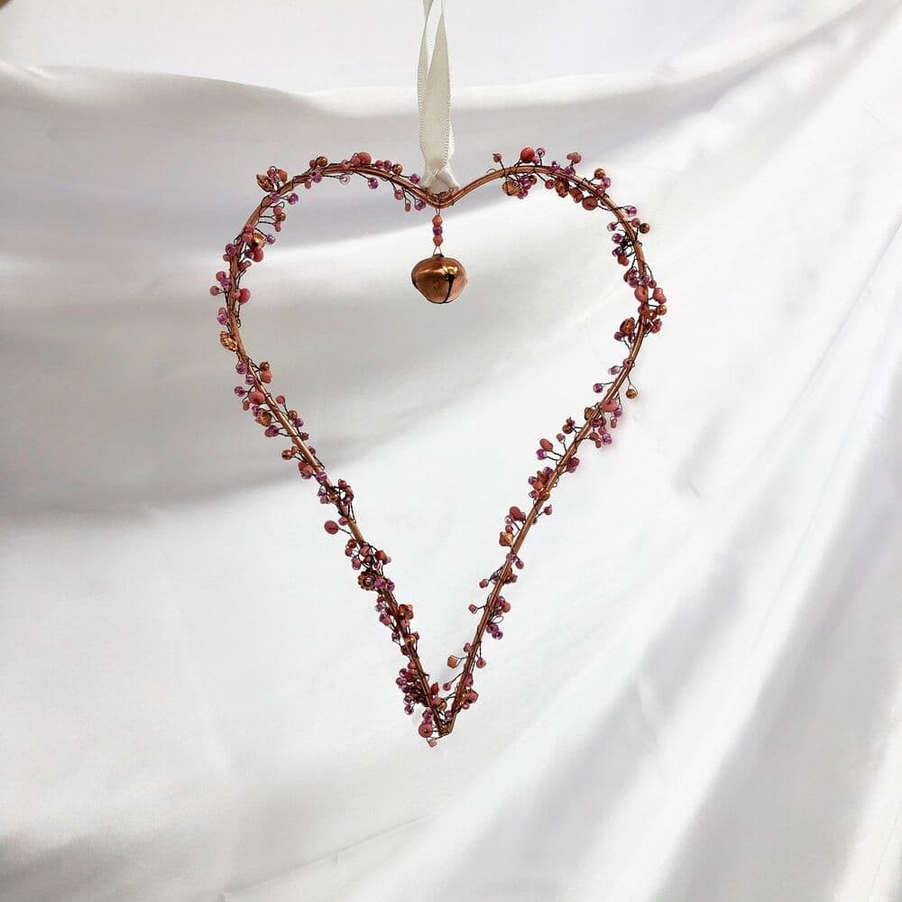 Copper and Pink Beaded Heart Decoration with Bell
