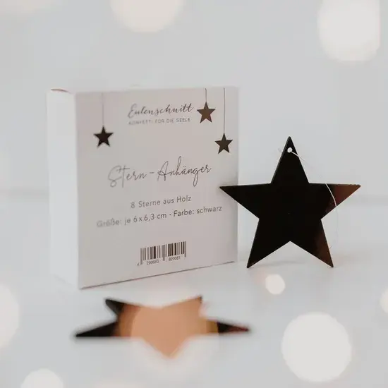 Set of 8, Black Wooden Stars, Hanging Decorations